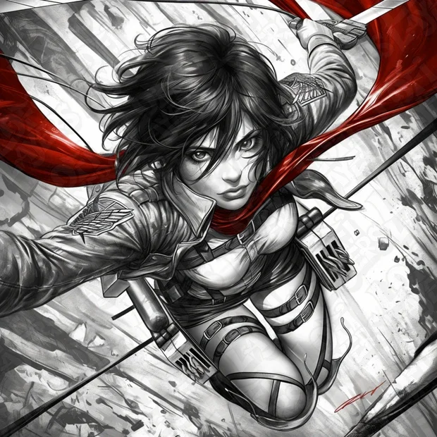 Mikasa Ackerman, Attack on Titan, Hueforge - 3D gedruckte Wandkunst