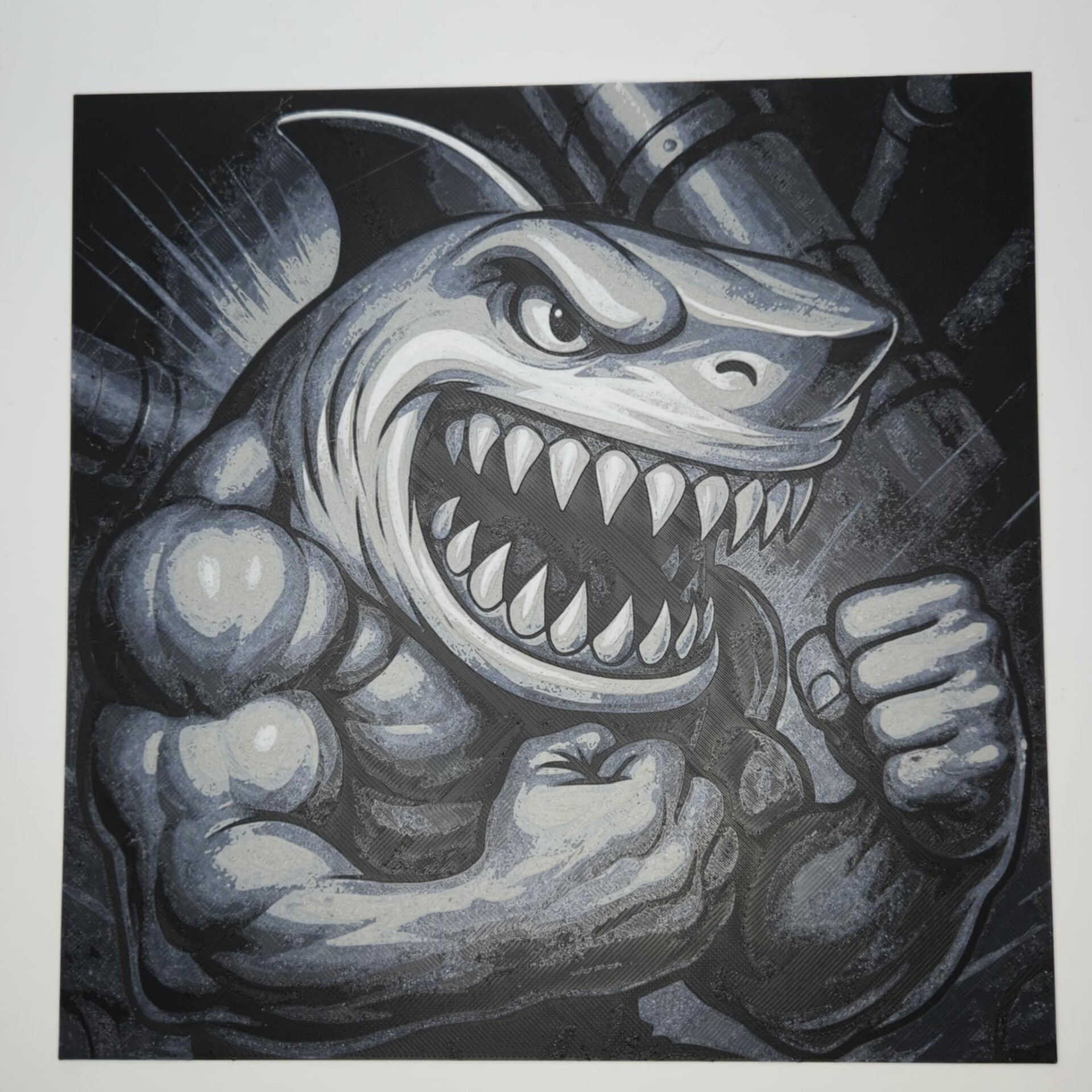 Im klassischen 90s-Stil gehalten, erinnert dieses Design an die legendären Street Sharks und bringt rohe Power direkt an deine Wand. Durch die 3D-Druckstruktur wirkt der Hai fast lebendig – bereit, sich aus dem Bild herauszukämpfen.